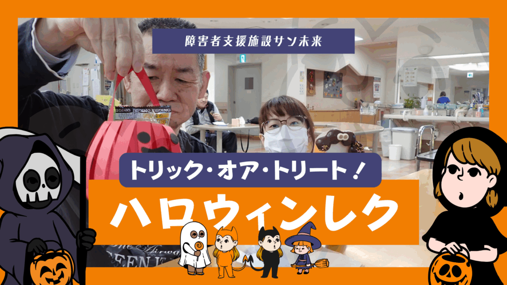10月31日はハロウィン!障害者支援施設サン未来では、ご利用者の皆様と一緒に「ハロウィンレクリエーション」を盛大に開催しました!この日のために、施設内はスタッフとご利用者の皆様が協力して作ったおばけやカボチャの飾り付けで、すっかりハロウィン... -